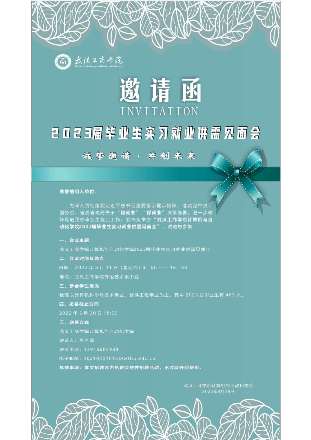 关于举办2023届毕业生实习就业供需见面会的邀请函