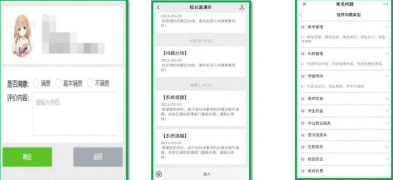 为反映校情民意,共促学校发展,计算机与自动化学院开通了“校长直通车”平台。该平台能实时接受校园里一些大大小小的反馈,并对学生在学校反映的事项进行处理,对学校的发展起到了很大的促进作用。