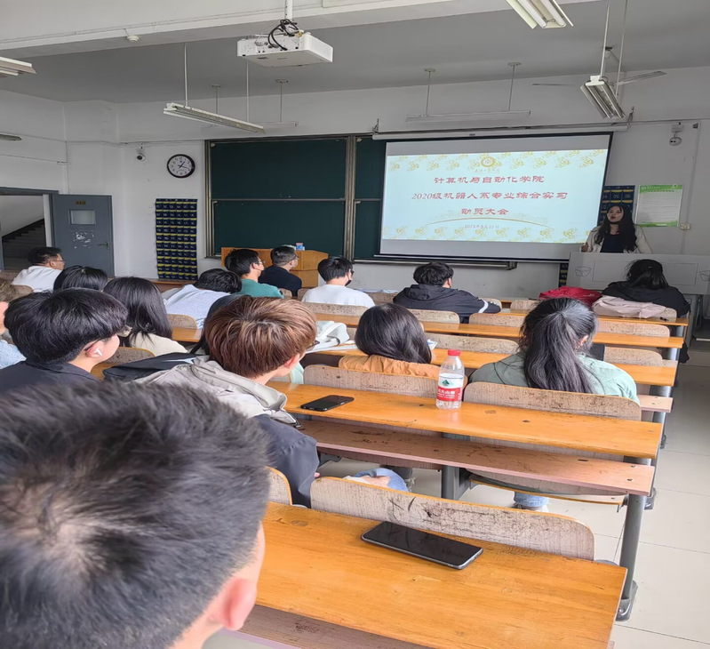 新闻中心讯(通讯记者:周阳钰)2023届专业实习动员大会在必赢优惠y272net综合楼211正式开展,教学副院长胡成松针对20级机器人系关于考研、考公、和常规情况的专业实习要求和具体安排以及院长刘雄华对专业实习中的日常出勤打卡、与实习指导老师的联系要求进行了强调,党总支书记吴艳对专业实习期间的学校住宿、评优安排和求职简历要点进行了解说。