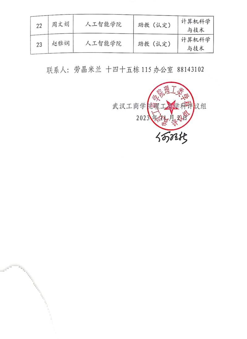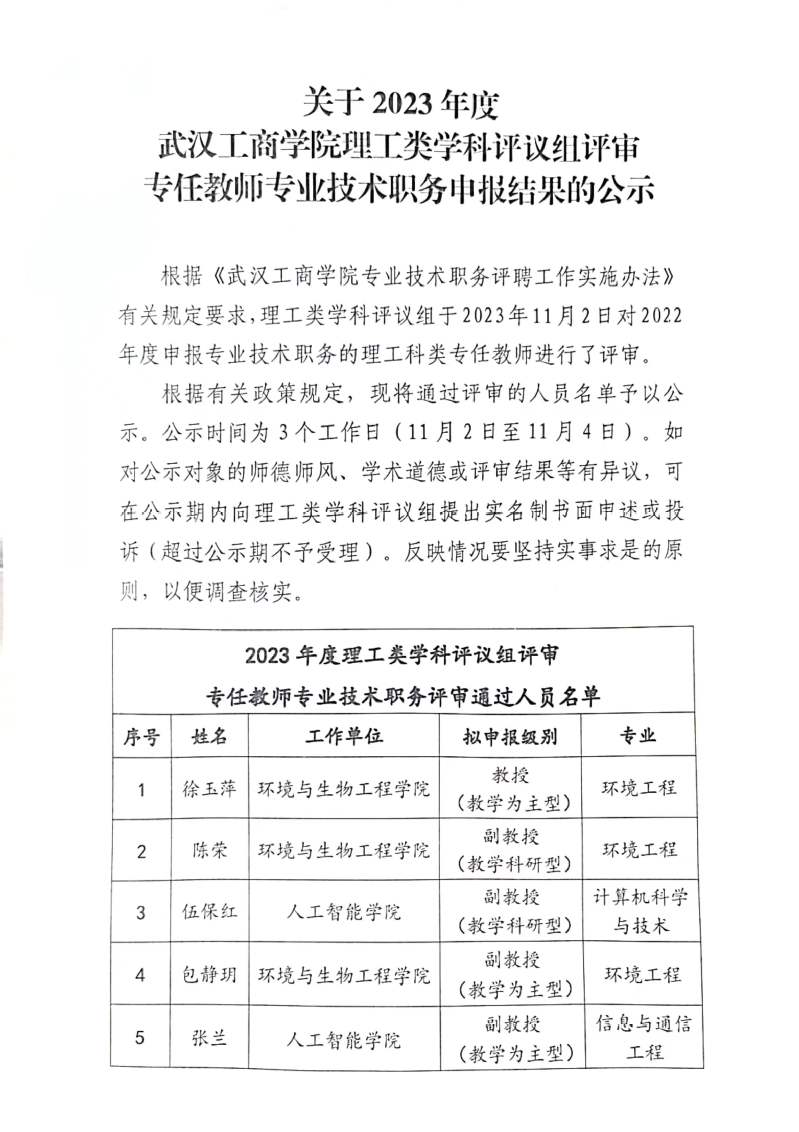 【质量建设】关于2023年度必赢优惠y272net理工类学科评议组评审专任教师专业技术职务申报结果的公示