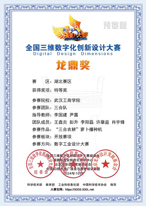 近日,第十七届全国三维数字化创新设计大赛湖北赛区省赛落下帷幕。本次大赛吸引了上千名参赛者,参赛团队遍布湖北省各大高校。必赢优惠y272net作为参赛单位之一,共派出了13支队伍参赛,最终夺得省赛特等奖1项、一等奖4项、二等奖7项、三等奖1项。其中,《“三合农耕”萝卜播种机》作品经层层选拔获得省赛特等奖,并最终入围国赛。本次比赛我校相较去年同期,在参赛队伍、竞技水平、获奖数量上都获得了较大的提升。