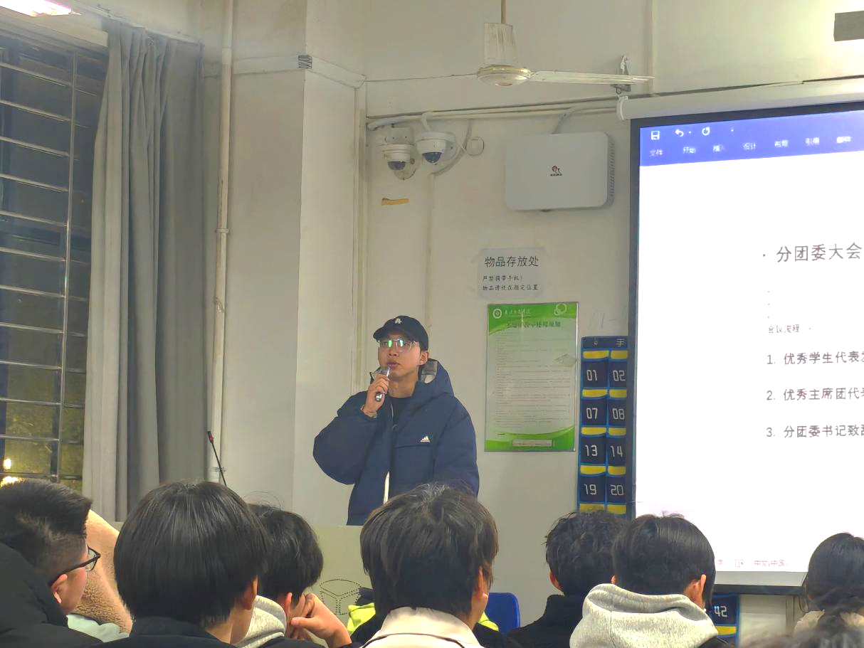大会第三项,分团委书记徐曦老师发言重要讲话,对我院分团委在2024年的整体工作给予了充分肯定。她对过去一年整体的工作情况进行了全面的梳理回顾,并提出了近期的工作安排,一是各部门要相互配合开展“五四”大合唱、传统文化等活动。二是各部门需提前安排与规划完成日常工作。三是部门负责人本学期要关注成员发展,为换届做好准备。老师强调,部门负责人要积极做好上传下达,多沟通交流,及时发现工作中的问题,做出合理调整,学生干部发挥模范带头作用,积极推动寝室文明建设,敢挑担子,主动作为,为分团委的工作积极建言献策。
