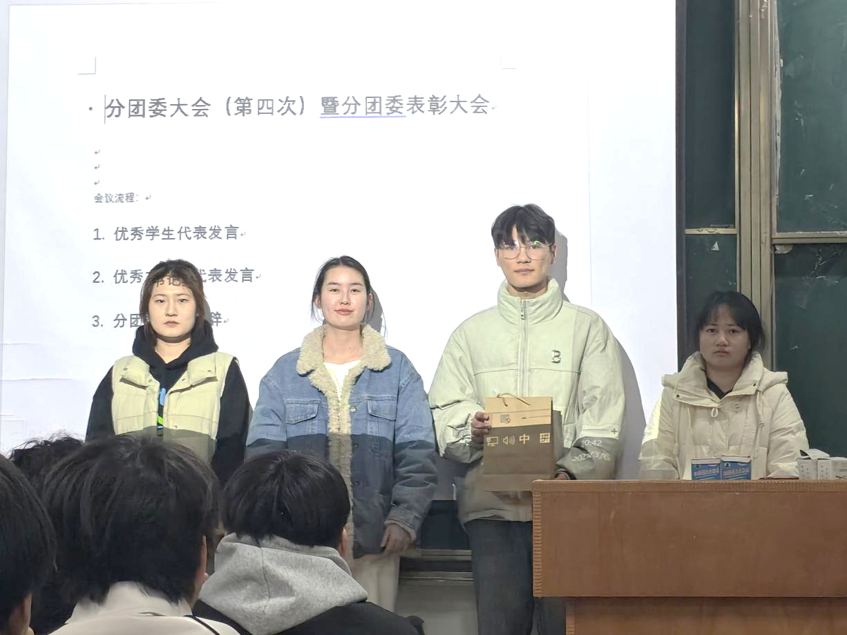 大会第二项,表彰优秀主席团代表,在分团委的蓬勃发展的进程中,有这样一群领航者,他们以卓越的领导力和无私的奉献精神,为学院的各项事务注入活力与方向。他们分别是学生会主席蔡依蕊、副主席陈之帆、团组部长李星健,他们的努力与付出,为学院发展贡献不可磨灭的力量。他们是分团委的骄傲,更是全体同学学习的楷模。