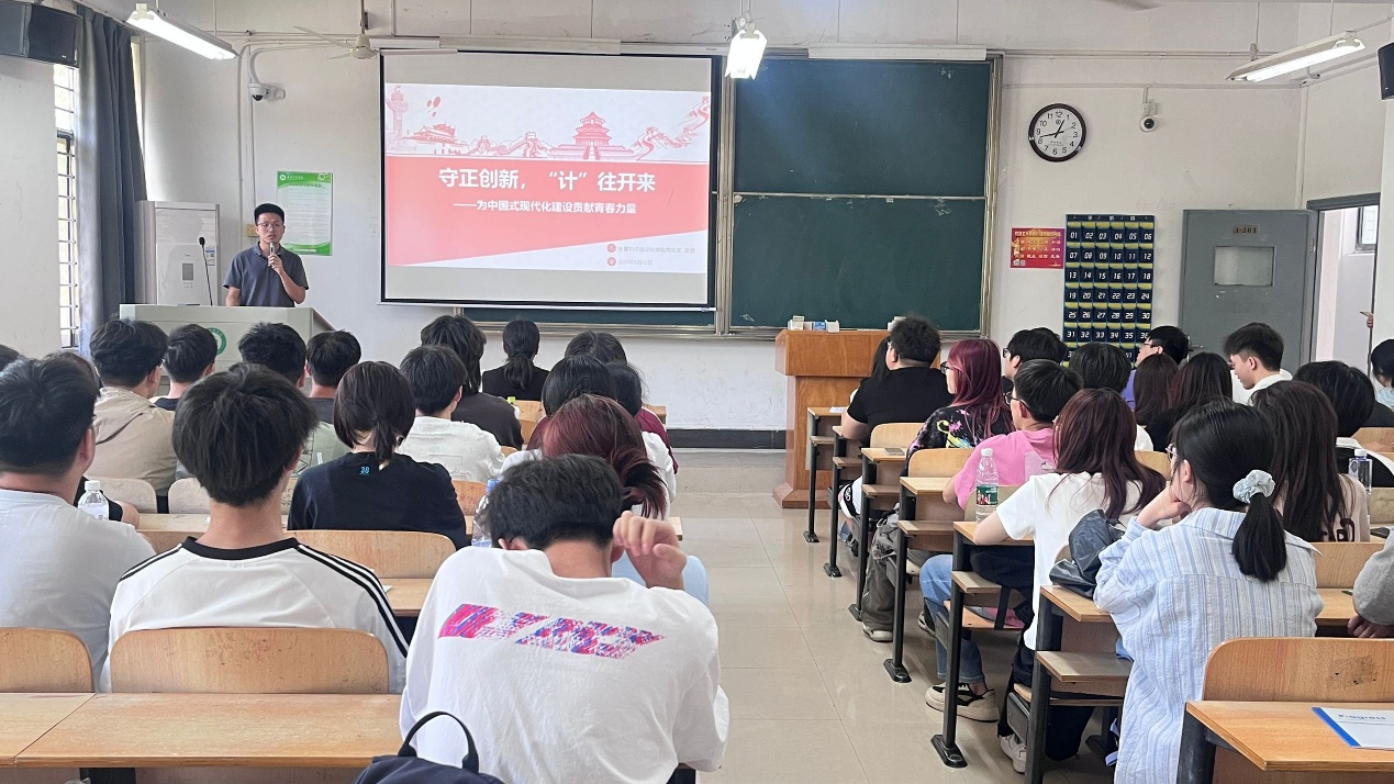 随后,吴书记以“守正创新,‘计’往开来——为中国式现代化建设贡献青春力量”为主题开启党校第一讲。她从“一项学习教育”“一次全面检阅”“一句深情嘱托”“一点工作感悟”四个方面与学员们进行分享,阐释了在全党开展深入贯彻中央八项规定精神学习教育的重要意义,教育引导全体入党积极分子牢记中国共产党是什么、要干什么这个根本问题,深思“为何学”、 勤思“学什么”、 常思“如何学”,在学深悟透中筑牢思想根基、增强党性修养,在日常学习与生活中主动担当、率先垂范,从细节做起、从小事做起,以实际行动发挥先锋模范作用。例如,要主动倾听同学诉求,积极参与志愿服务等基层事务,在实践中锤炼责任意识与服务能力,真正做到“守正”传承党的优良传统,“创新”探索新时代青年使命的实践路径。