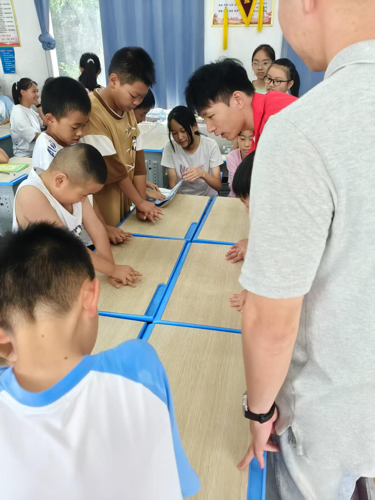 今天是7月9号,繁星志愿服务队来到秭归的第三天。早上八点,托管点的走廊就响起了细碎的脚步声。今天是志愿服务第三天,比前两天多了几分 “默契感”:有的孩子熟门熟路地帮新伙伴找座位,有的攥着昨晚画好的 “奇妙蘑菇屋” 要分享。看着这些画面,知道我们和孩子们一起,在这夏日时光里,把 “陪伴” 二字,又写深了一些。