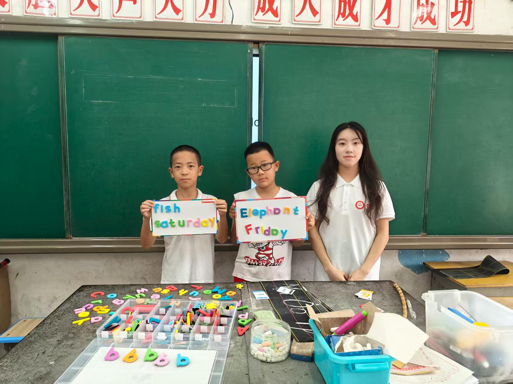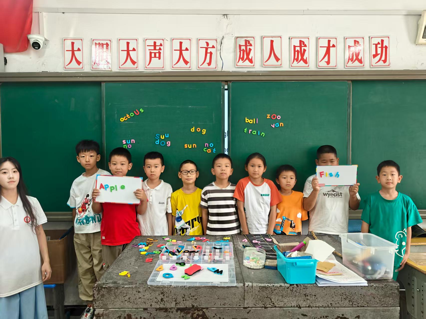 第一节课,李润鹏老师带来的英语课堂而今天,当我们抱着字母卡片、拎着简易小道具推开教室门,英语主题课堂刚开场,孩子们就挤到讲台边,盯着卡片上彩色的英文字母,课上,同学争先恐后的要求上台利用卡片字母拼出自己所想的单词,在夏日的蝉鸣里,把陌生与隔阂熬成信任的甜汤,借由英语课堂的笑声与互动,在彼此成长的轨迹里,悄悄埋下对世界好奇的种子,继续奔赴更生动的相遇……