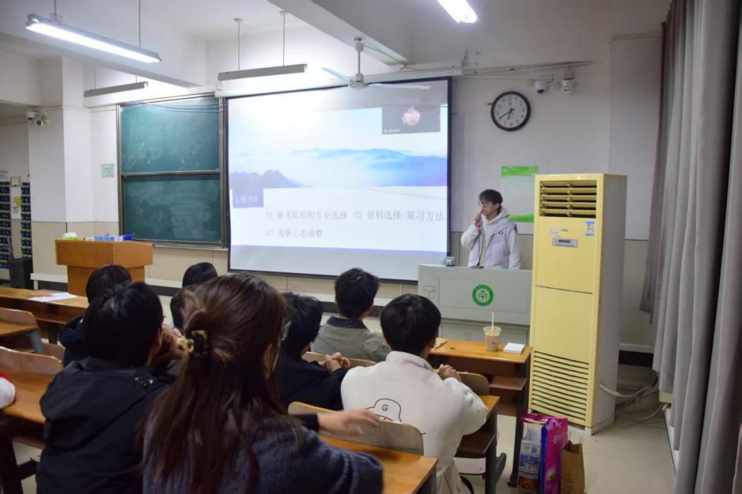 随后进入经验分享环节。2024届计科专业校友、在读研究生的冉星星以及2025届软工专业校友、在读研究生的郑锦波,他们结合自身研究生备考经历,从备考规划制定、科目复习技巧、心态调节方法等方面展开分享。冉星星详细讲解了不同复习阶段的核心任务,强调了基础知识点梳理与真题演练的重要性;郑锦波则聚焦考研择校择专业的策略,提醒同学们要结合自身实力与职业规划理性选择,避免盲目跟风。两位校友的分享干货满满,为有考研意向的同学提供了切实可行的备考思路。