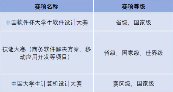 软件工程专业学生可以参加的主要竞赛明细如下表。