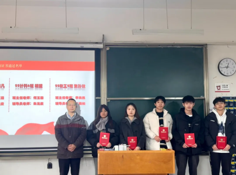学院领导为通过“软考”学生颁发荣誉证书
