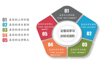 2.“5R”的教学运营模式。在教学中提供真实的开发环境、项目案例、项目经理、项目考评、项目运营模式。在学生的学习、实践环节,提供了真实的软件项目开发的工作环境(real environment),并以真实的项目案例(real project)贯穿于理论课程及实训环节,并通过真实的项目经理(real manager)进行授课,以按照真实的项目考评(real project appraisal)方式进行验收考核,对于师生共同完成的好的项目,将使用真实的项目运营模式(real operation model)开展运营。