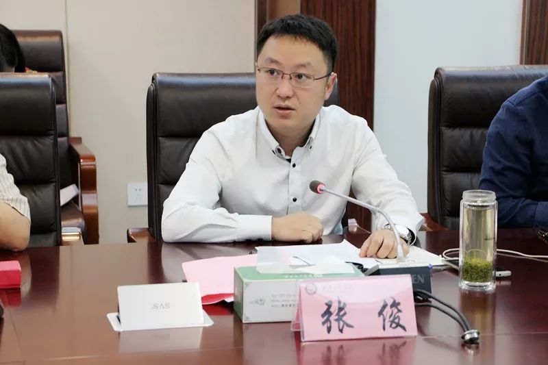 我校副校长张俊从四个方面汇报了学校对外合作的情况。