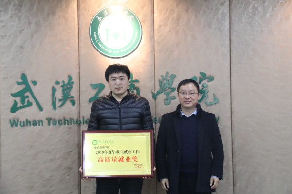 图为张俊副校长(右)为管理学院颁发“2018年度毕业生就业工作高质量就业奖”