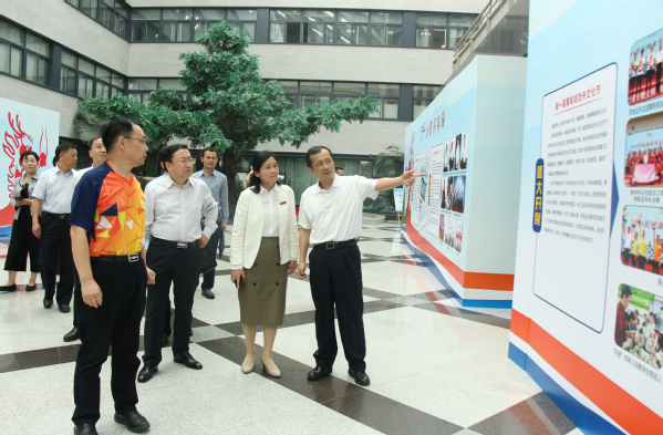 图为与会领导参观龙舟文化节展板 摄影:郭冰雪
