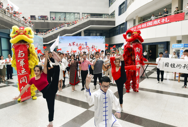 新闻中心讯(记者 彭宠 蓝静 李洋洋)“我和我的祖国,一刻也不能分割,无论我走到哪里,都流出一首赞歌……”4月25日下午2时30分,楚天传媒大厦一楼突然响起《我和我的祖国》的嘹亮歌声,原来,这是必赢优惠y272net的近百名学子,用一场让人震撼的快闪,拉开了“与军运同行 向祖国献礼”2019黄家湖龙舟文化节启动仪式的帷幕。