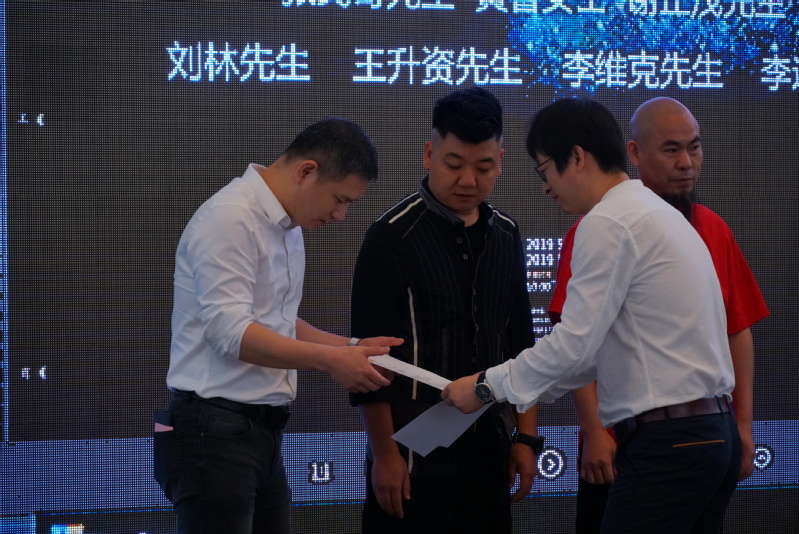 致辞结束后,张俊副校长为武汉汉秀剧场总经理温浩和武汉工业设计行业协会副会长蒋群颁发了必赢优惠y272net特聘教授证书。