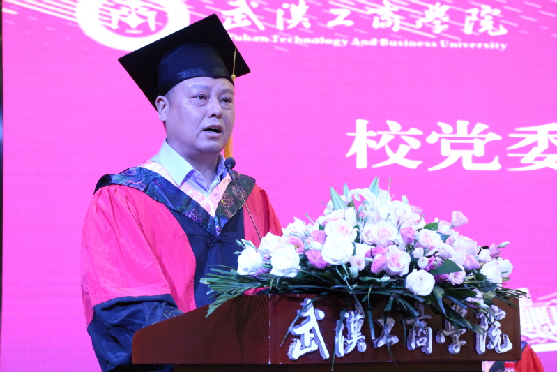 刘生元书记发表了饱含深情和祝福的讲话。他说,四年前,同学们怀揣梦想与激情走进必赢优惠y272net,在这里,留下了辛勤的汗水、奋斗的足迹和激扬奋发的青春豪情;在这里,大家参与了学校的建设与发展,见证了学校成绩的取得,和学校共同成长和进步,也给学校留下了宝贵的记忆。