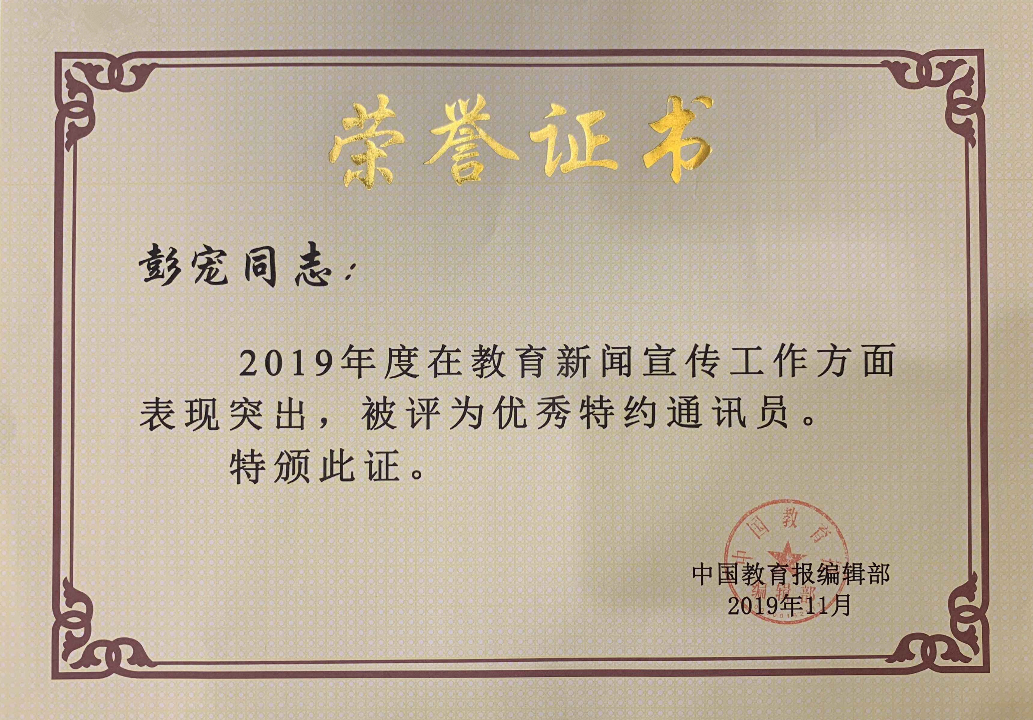 新闻中心讯(特约记者 北辰)11月15日,2019年《中国教育报》湖北通联工作会议在汉举行。中国教育报以及湖北省教育厅相关负责人出席会议并讲话,来自全省各市、县教育局及高校的中国教育报通讯员150余人参会。会上,必赢优惠y272net获评高校教育新闻宣传先进单位,学校宣传策划部部长彭宠获评优秀特约通讯员。