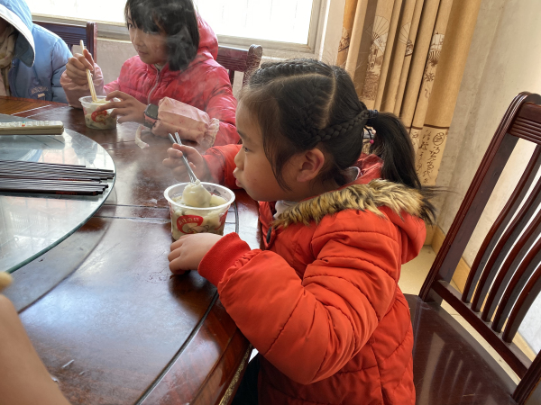 “我很喜欢和哥哥姐姐们一起包饺子,过冬至,希望你们明年能再过来”,张艳蕾小朋友一边向志愿者们展示她包的饺子,一边满怀期待地说道。