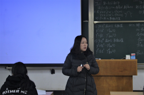 新闻中心讯(记者 袁灏宸)“我们要正确认识和应对逆境,正所谓‘自古雄才多磨难,从来纨绔少伟男’,所以我们要乐观积极的面对逆境。而对待顺境,我们应该珍惜现有的境况,力争在顺境中有所作为,居安思危。”12月18日上午9:00,数学教研室汪燕老师为物流工程专业的学生们上了一堂别样的数学课。她所讲的内容是《函数的极值与最值》,在讲“解极值与最值”这个知识点的时候融入了思政教育,发挥了思想政治理论课在人才培养中的引领作用,促进高校课程思政与思政课程同向同行、共同发力、形成大思政格局。让学生们在学习到数学知识的同时,更学会了如何面对人生的逆境和顺境。