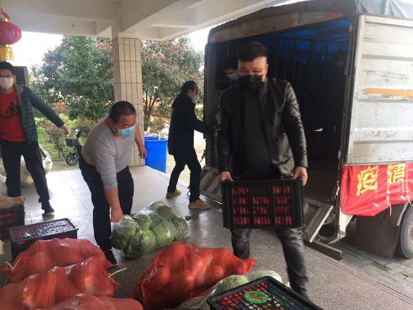 图为 校友陈成亲自护送爱心蔬菜