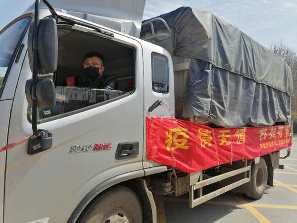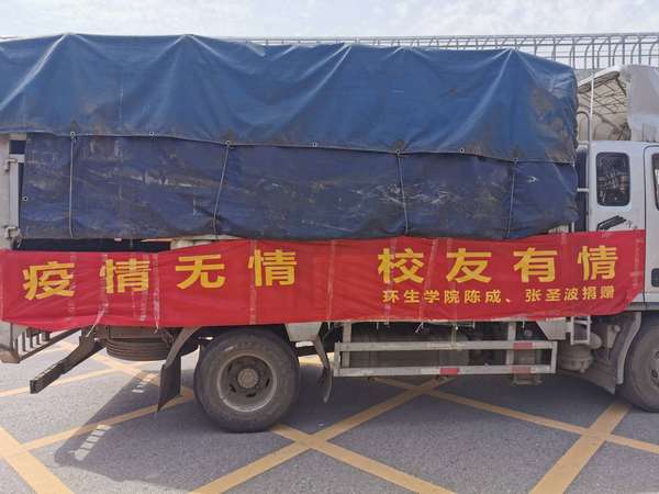 在运送蔬菜的货车上挂着一条横幅,上面写着“疫情无情,校友有情”,陈成介绍,自己是环生学院生物工程专业2014届毕业生,在校期间得到过很多老师的帮助,当时的辅导员赵家红老师对他的学习和生活一直都很关心,所以即使是毕业后,他都和老师们保持着密切的联系,始终怀抱着对母校的感恩之情。毕业后他从事餐饮业和中药材种植工作,而且餐厅就开在学校附近的东澜岸,对学校的动态十分关注,疫情发生后,他一直牵挂着母校,希望能够为母校做些什么,以表达自己的感恩之情。