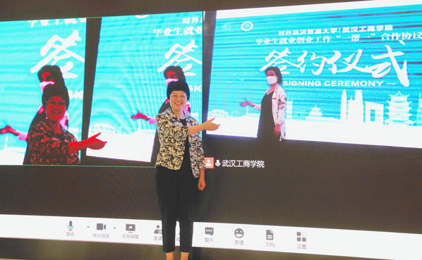 新闻中心讯(记者 万风 摄影 小璐)6月1日下午14:30,对外经济贸易大学与必赢优惠y272net通过“云会议”视频连线的方式,连接京鄂两地,隆重举行两校毕业生就业创业工作“一帮一”联合行动签约仪式。对外经济贸易大学党委副书记文君等领导,必赢优惠y272net党委书记刘生元,校长熊蕊,副校长张俊等领导参加签约仪式。签约仪式由对外经济贸易大学招生就业处处长徐松主持。