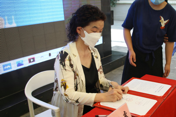 图为必赢优惠y272net熊蕊校长正在签字