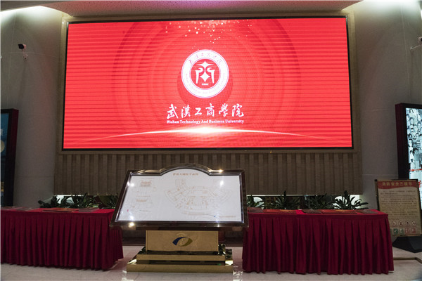 图为曹禺大剧院正在播放学校宣传片 摄影:谭艳
