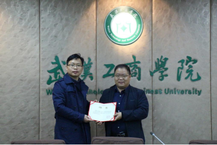 图为时静副社长为代四广副教授颁发聘书 摄影:晏阳