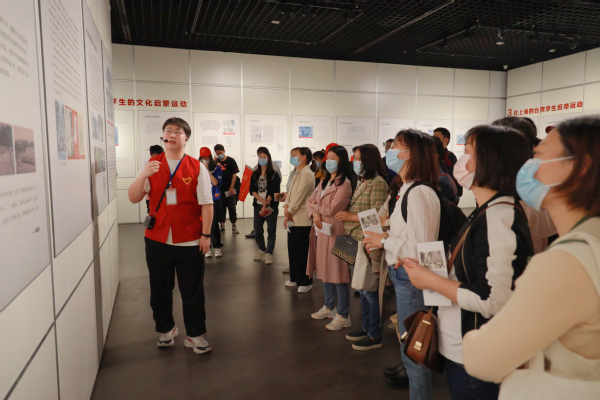 学生志愿者正在讲解台湾青年抗战历史 摄影:张誉东