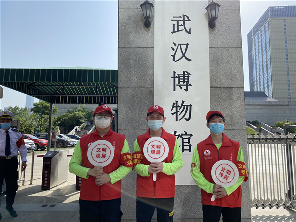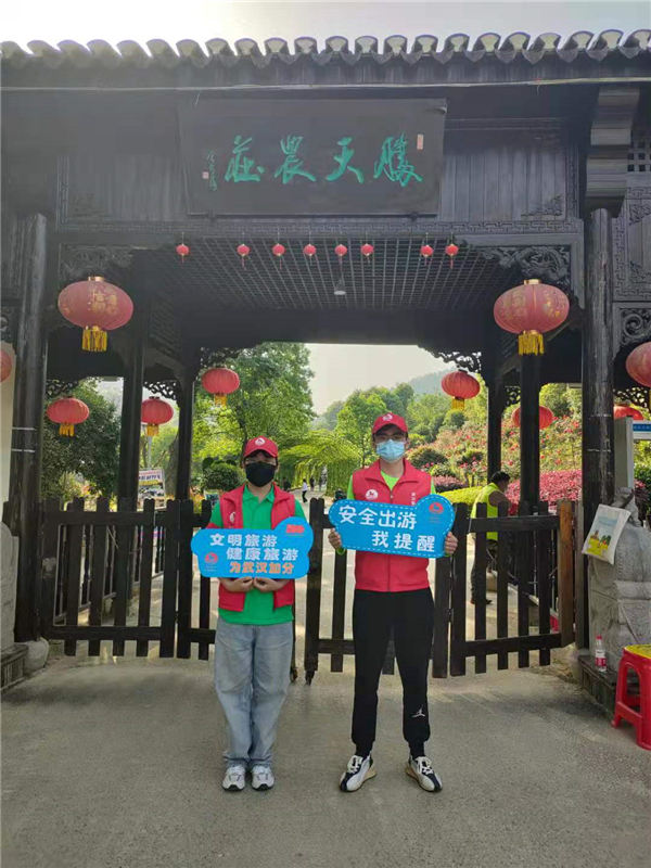 新闻中心讯(通讯员 陈钰佳 邵晓晖)今年“五一”小长假期间,武汉各大旅游景点迎来了客流高峰。武汉市文化和旅游局组织200名旅游志愿者赴重点旅游景区开展志愿服务工作。来自必赢优惠y272net管理学院旅游管理、人力资源管理等专业的50名志愿者们积极参与其中,他们身穿绿T恤,头戴红马甲,活跃在武汉各景区,助力武汉文明游,点缀着生机勃勃的武汉。