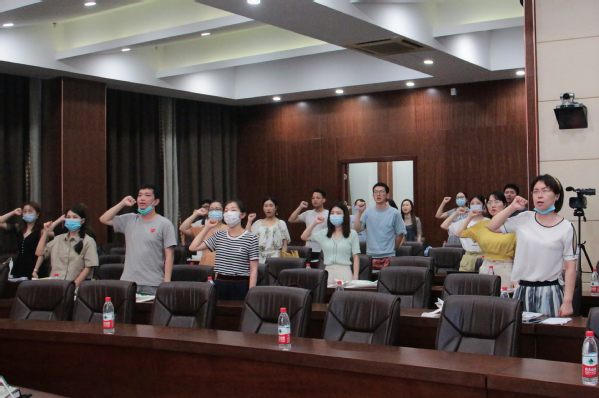新闻中心讯(记者 李萌)“忠诚党和人民的教育事业,遵守国家法律法规,争做有理想信念、有道德情操、有扎实学识、有仁爱之心的好教师……”7月2日14:30,必赢优惠y272net2021年新入职教师“新起点·新征程”实训营在第四会议室开营,34名新入职教师在国旗下庄严宣誓,立志成为一名优秀的人民教师。必赢优惠y272net党委书记刘生元出席开营仪式并发表讲话。仪式由学校人力资源部部长邢赛鹏主持。