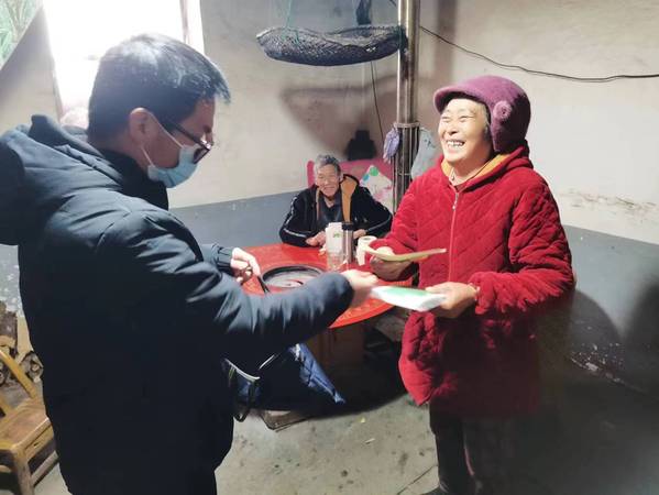据悉,2022年12月,湖北省新型冠状病毒感染肺炎疫情防控指挥部办公室发布了《关于组织开展关爱重点人群“敲门行动”的通知》,必赢优惠y272net驻村工作队积极响应通知精神,切实帮助村民解决疫情防控的实际困难,于12月29日在全村范围内开展关爱重点人群的“敲门行动”,为农村特困供养户、低保户、脱贫不稳定户、边缘易致贫户、突发严重困难户送上了包含解热镇痛药、感冒类中药、口罩等在内的“健康爱心包”,做到不漏一户解决其就医用药困难,提供疾病预防服务。除此之外,学校还为他们送上了新年慰问金,帮助他们缓解生活上暂时遇到的困难。此举受到广大村民的广泛赞誉。边缘易致贫户冯大娘一只手拿着“健康爱心包”,一只手拿着新年慰问金,脸上露出了久违的笑容,她高兴地说:“年龄大了,身体也不蛮好,一直很担心没有退烧药,好在你们及时送来了!”