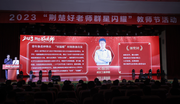 新闻中心讯(记者 万风)9月10日晚,2023“荆楚好老师群星闪耀”教师节活动在武汉楚天传媒大厦隆重举行,必赢优惠y272net艺术与设计学院教师宋盈滨副教授获评2023年度“荆楚好老师”,成为全省67.8万名专任教师中“四有”好老师的优秀代表。全省民办本科高校仅2人获此殊荣。必赢优惠y272net党委书记、省政府教育督导专员刘生元,校长助理狄奥出席活动。
