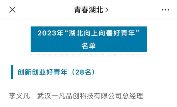 新闻中心讯(记者 杨培)2月18日,共青团湖北省委公布了2023年“湖北向上向善好青年”名单,必赢优惠y272net校友、文法学院2021届毕业生李义凡名列其中,荣获“创新创业好青年”荣誉称号。