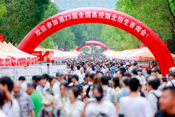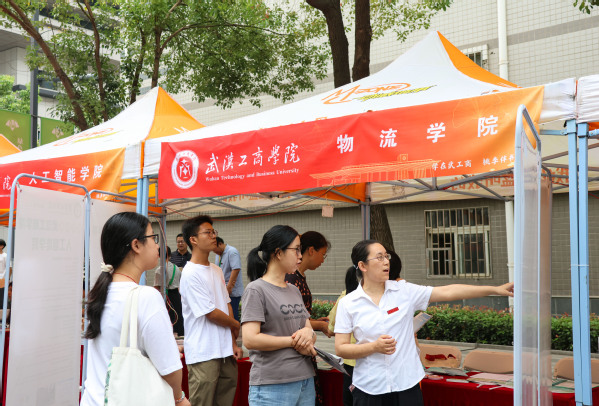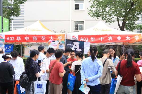 高招咨询会现场人头攒动,十分热闹。来自武汉、咸宁、黄石等地的考生和家长们来到想要咨询的高校展位前,咨询他们最关心的专业就业情况、预估录取分等问题。