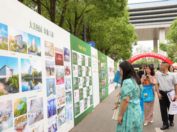 图为考生和考生家长参观校园成果展 摄影:陈晓丹 胡毅
