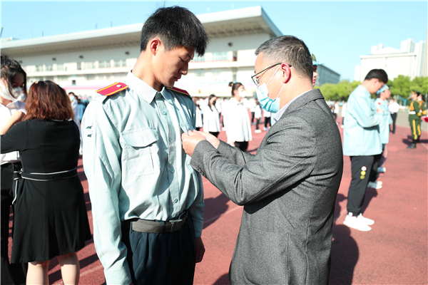 仪式在庄严的国歌声中拉开序幕,伴随着全体师生的注视,团旗护卫队迈着铿锵有力的步伐,护送团旗至学生方阵前,在国旗下、团旗前,校领导和优秀团员代表为新团员佩戴团徽。随后,新老团员们在艺术与设计学院2019级数字媒体艺术专业学生王毓涵的带领下面向团旗庄严宣誓,大家用坚定的誓言表达着成为一名共青团员的责任和担当,一张张青春洋溢的面孔上写满了光荣与自豪。