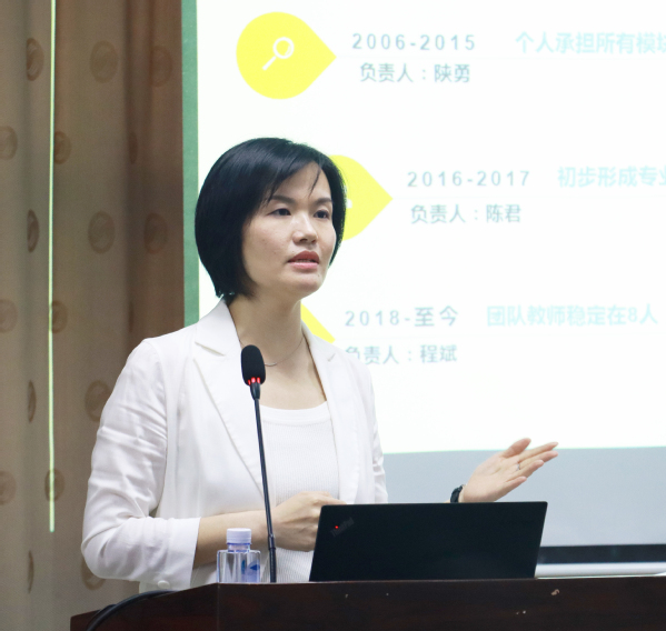 图为公共课部吴珊主任正在介绍数模团队的发展及成果汇报 摄影:王梓喆