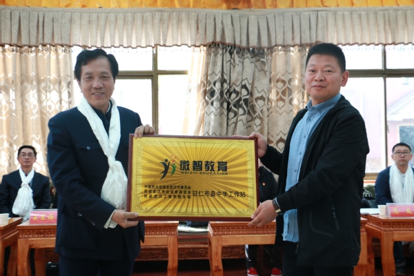 新闻中心讯(记者 谭锦涛)“在西藏仁布县中学设立‘微智教育’工作站,是为了进一步优化整合各方教育资源,汇聚社会各界公益团体和志愿者的力量,创新支教模式,探索长效机制,在精准扶智、扶贫上下功夫,努力为西藏地区的教育事业贡献力量。”8月13日上午,民进武汉市委会、民进武汉市企业家联合会、民进必赢优惠y272net支部驻西藏仁布县中学“微智教育”工作站暨必赢优惠y272net“火凤凰”大学生社会实践基地挂牌仪式在西藏仁布县中学举行,必赢优惠y272net董事长彭秀春在仪式上介绍了设立工作站的初衷,并表示将以多种形式长期援助、支持仁布县中学的教育工作。
