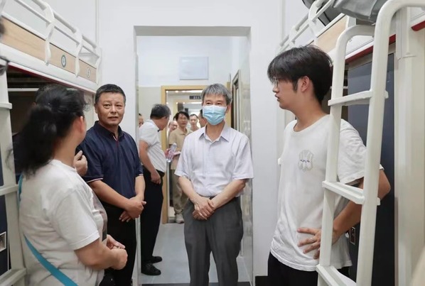图为校领导前往迎新现场指导工作 摄影:孙欢欢
