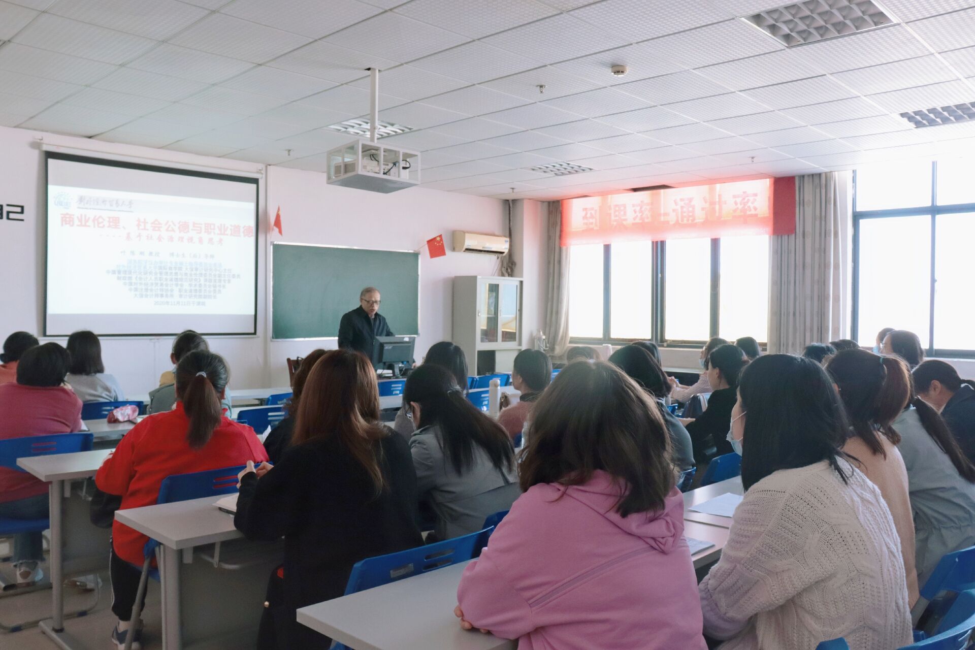 (管理学院分团委宣传部讯 通讯员张文玉 孙雯静)为提高我校教师的专业能力,知名教授叶陈刚于2020年11月12日下午2:00在综合楼828教室开展了主题为“商业伦理、社会公德与职业道德”的讲座。参与此次讲座的有管理学院副院长陈振祥及管院全体教师。