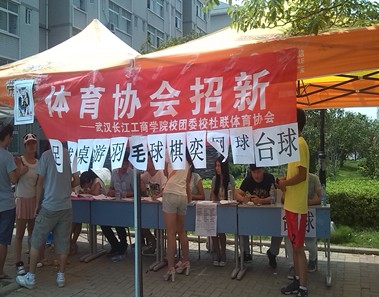 在体育协会的招新点打出体育协会的旗号,让大家知道体育协会的核心与主旨,展示出我们的青春与激情。