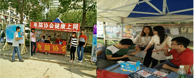 在为期不长的两天时间里,协会摆点处经常都是门庭若市。学生纷纷来到摆点处询问有关电脑方面的问题,技术部长及技术部成员都热心帮忙解决。还有帮忙重装系统,装软件,忙的不亦乐乎。