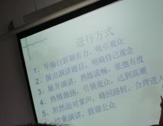 首先演讲梯队的学长给我们即兴演讲了一段,整个过程熟练流畅,张弛有度。达到高潮时,又能够引领观众,随之热情激昂。他完善的思想体系,熟练的语言技巧,还有恰到好处的肢体语言无不让我们报以热烈的掌声。