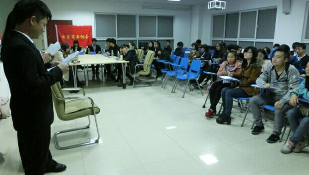 (本网讯 通讯员 邓翠芸)电子商务协会于2014年11月15日晚上在综合楼105举办关于服装设计拉赞助模拟大赛活动,英语俱乐部协办,主持人是金筱琳和雷都。