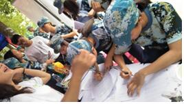 一大早工作人员就在体育馆集合,为一天的摆点做准备。所有物资到位之后,大家开始装饰帐篷,然后等待学弟、学妹的到来。在学弟、学妹来帐篷了解环境保护协会的时候,工作人员为新生耐心讲解各种疑问,营造了一个良好的招新氛围。