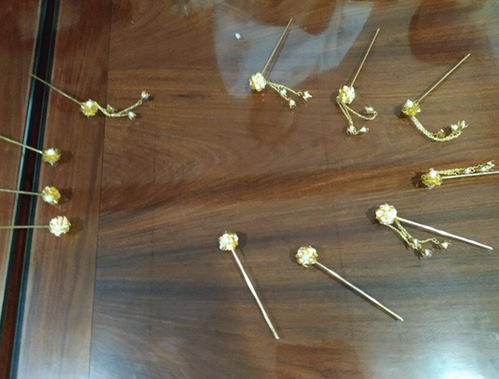 在上次小课的基础之上,本次小课还增添了新的元素——绾发。《隋书·儒林传·刘炫》中写道:“余从绾发以来,迄于白首。”绾发即为盘发,中国古时男女都会用簪来固定发冠,亦有把笔插在头上,方便随时记事,称为簪笔(簪笔原指一种将毛装在簪头的冠饰)。少数民族也有传统的用簪来固发、美发之俗,历史悠久,具有浓郁的民族特色,蕴含着丰富的文化内涵。