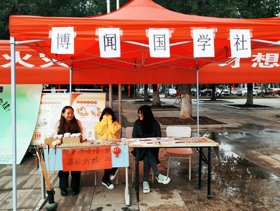 12日当天,不仅是我们摆点宣传的日子,也是我们的此次活动的环节之一——“巧翦垂簪”。我们在国学馆开设了发簪以及剪纸制作的小课。其中我们还展出了许多精美的样品,以及大部分平日里小课学习时制作的小物。让前来参加活动的校友们感受到了国学社对于此次活动满满的诚意与心意。
