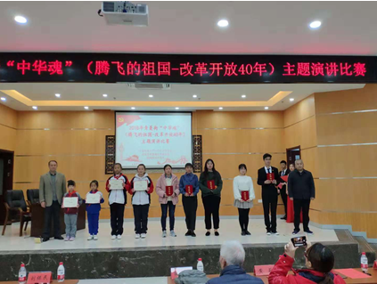 比赛中,选手们以充分的准备、自信的姿态、激昂的语言点燃了现场的氛围,赢得了观众的阵阵掌声。选手们以“腾飞的中国之改革开放40年”为核心,多方面娓娓道来,历史车轮滚滚向前,时代潮流浩浩荡荡。忆往昔峥嵘岁月稠,看今朝,中华儿女多奇秀。未来,还有更多的四十年,需要我们去拼搏,去奋斗,去开拓;还有更多的宏伟蓝图,需要我们去构想,去描绘,去践行;还有更多的梦想,需要我们去憧憬,去追逐,去实现,让我们携手并肩,去开启下一个辉煌的四十年!,每个人都肩负着使命,共赴难关,携手共进,需要每个人的参与。”……经过两个小时的角逐,选手们以从容的姿态、流利的台词以及淋漓的发挥,令观众兴奋不已。最终,获奖名单出炉,同时也获得了观众的一致认可。我们学校的选手也获得了优异的成绩,隗雨菲同学获一等奖,田琪同学获二等奖,熊紫彤同学获三等奖。